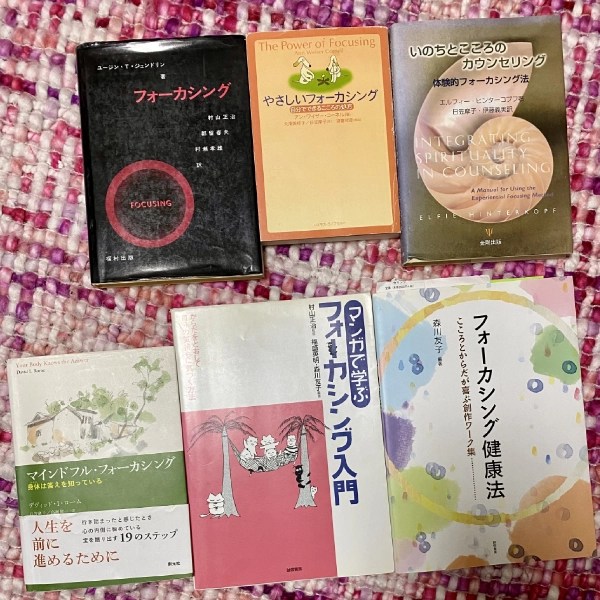 金剛出版から刊行されたジェンドリンの著作『フォーカシング指向心理療法〈上〉体験過程を促す聴き方』・『フォーカシング指向心理療法〈下〉心理療法の統合のために』は必読書だと思います。(あいにく〈上〉は品切で出版社のページから削除されているので、〈上〉については版元ドットコムさんの当該ページのリンクを貼ってあります)
